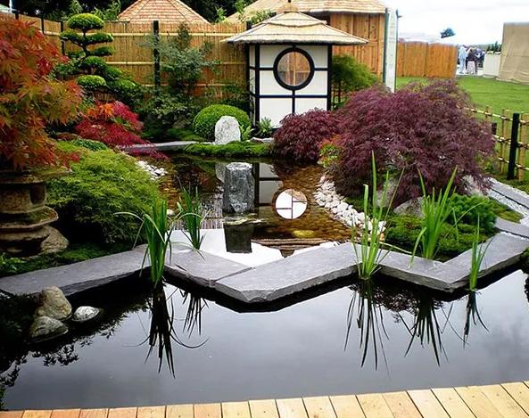 許多現(xiàn)代的日式庭園所吸收的大多是禪宗沉思冥想的枯山水設計思想。其總體設計遵循著不對稱的原則,而整體風格則是寧靜、簡樸,甚至是節(jié)儉的。