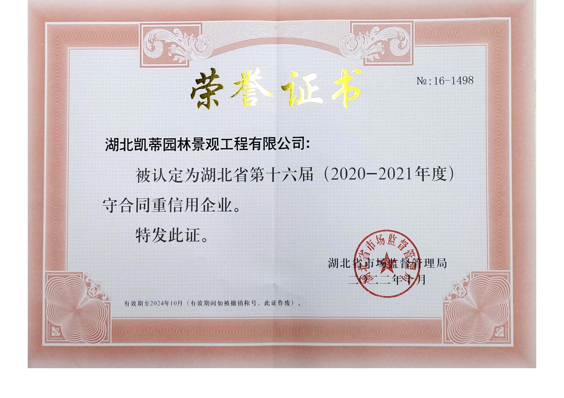 湖北省守合同重信用企業(yè)